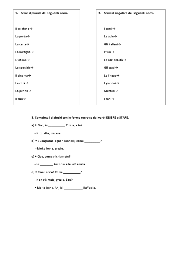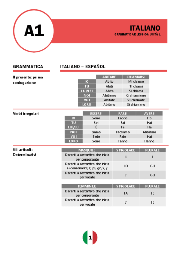 Unità 1. Grammatica e Lessico