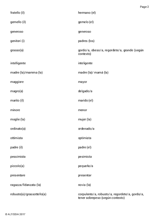 He publicado nuevos apuntes de Italiano A2: VOCABULARIO