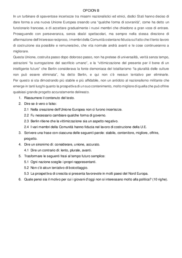 Selectividad italiano 2018
