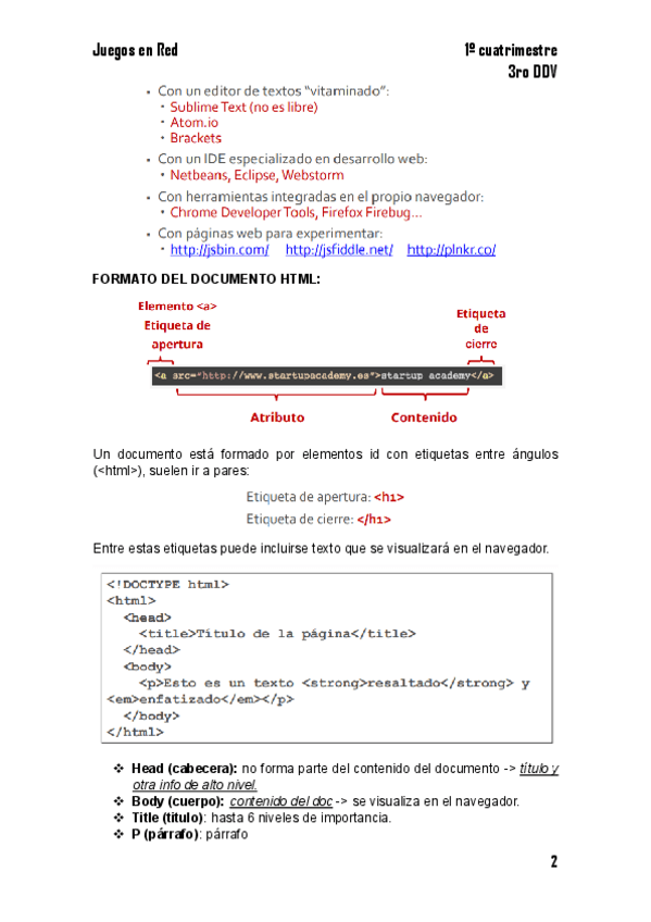 He publicado nuevos apuntes de 3º Juegos en Red: Apuntes - Tema 2.1. HTML.pdf