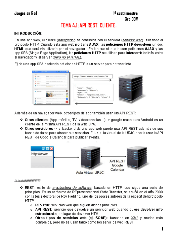 He publicado nuevos apuntes de 3º Juegos en Red: Apuntes - Tema 4.1. API-REST - Cliente.pdf