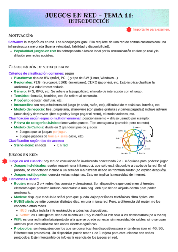 He publicado nuevos apuntes de 3º Juegos en Red: Tema 1 Resúmenes