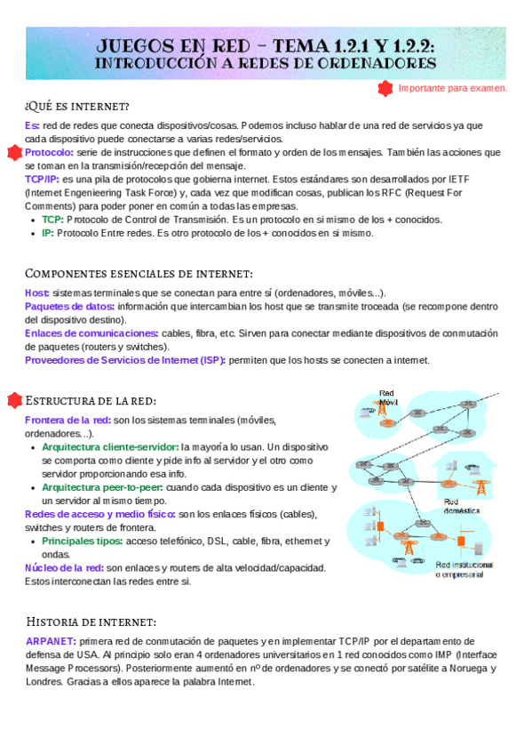 He publicado nuevos apuntes de 3º Juegos en Red: Apuntes - Tema 1.2. Introducción a las redes de ordenadores.pdf