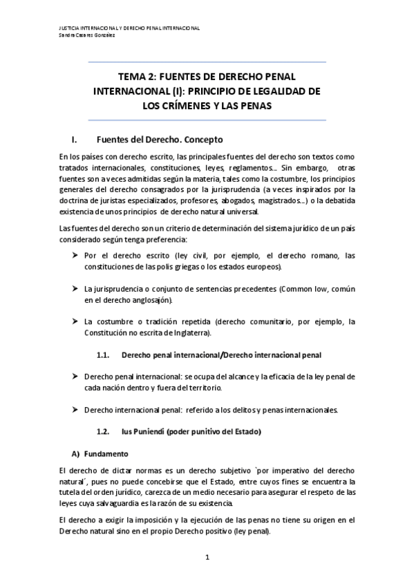 Son apuntes de ella cogidos de clase completados con el manual de Derecho penal Internacional de Polaino y otros autores. Los iré subiendo conforme los vaya dando. Los de Cobo son apuntes cogidos de clase