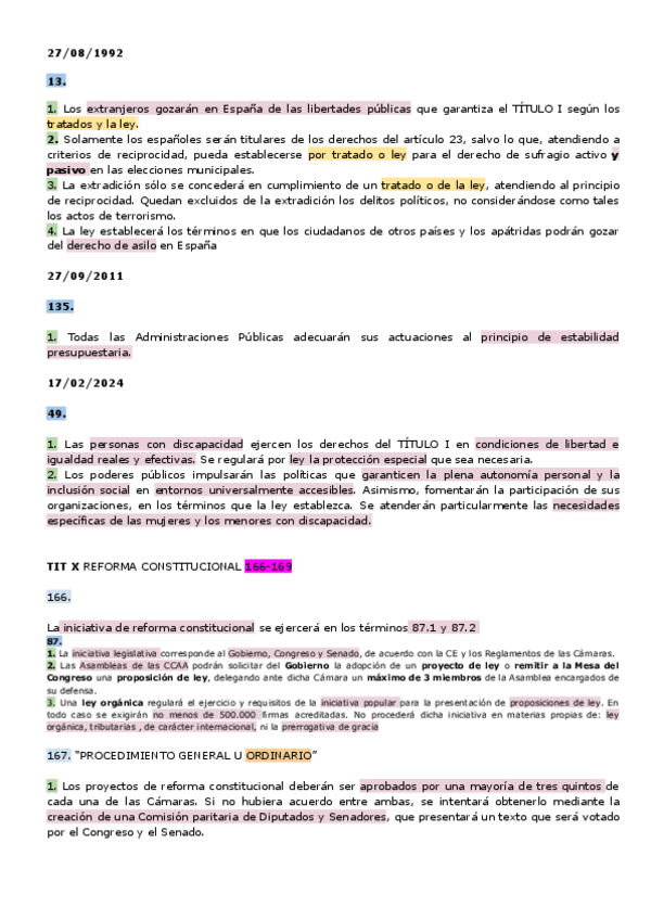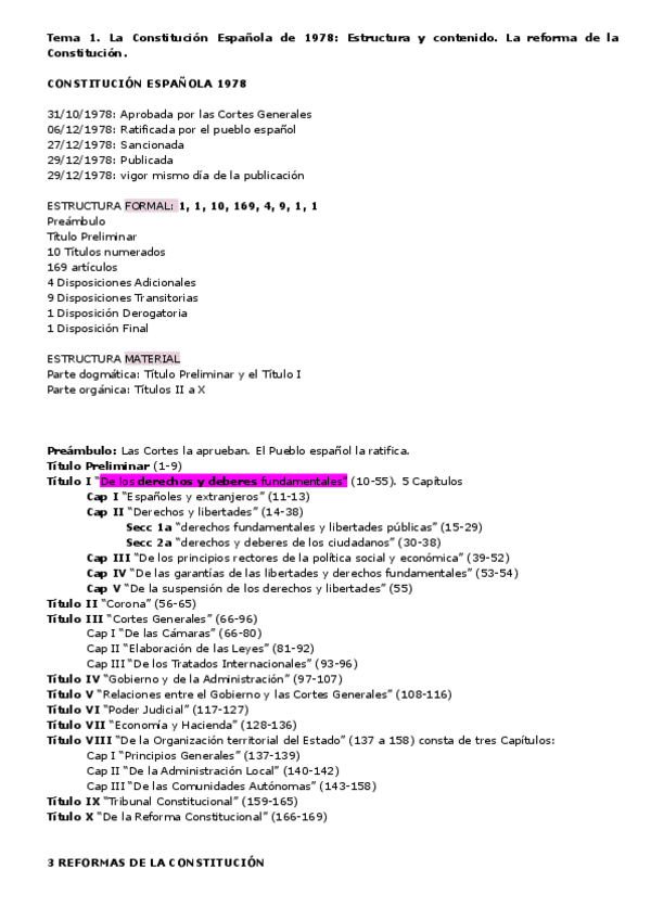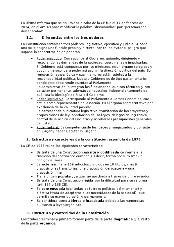 La Constitución Española de 1978: Estructura y Contenido. la Reforma de la Constitución.