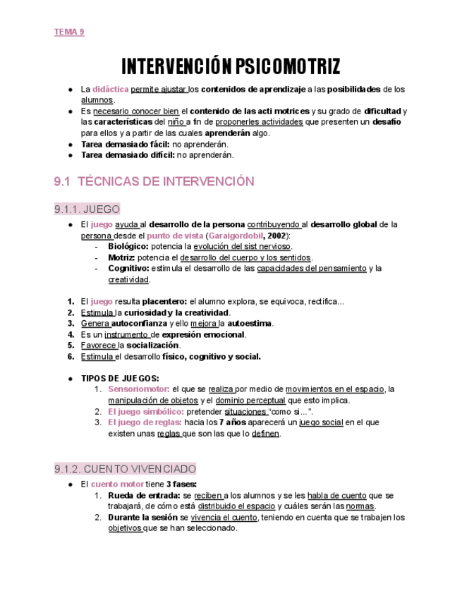 He publicado nuevos apuntes de 2º La construcción de la psicomotricidad en la infancia: TEMA-9.pdf