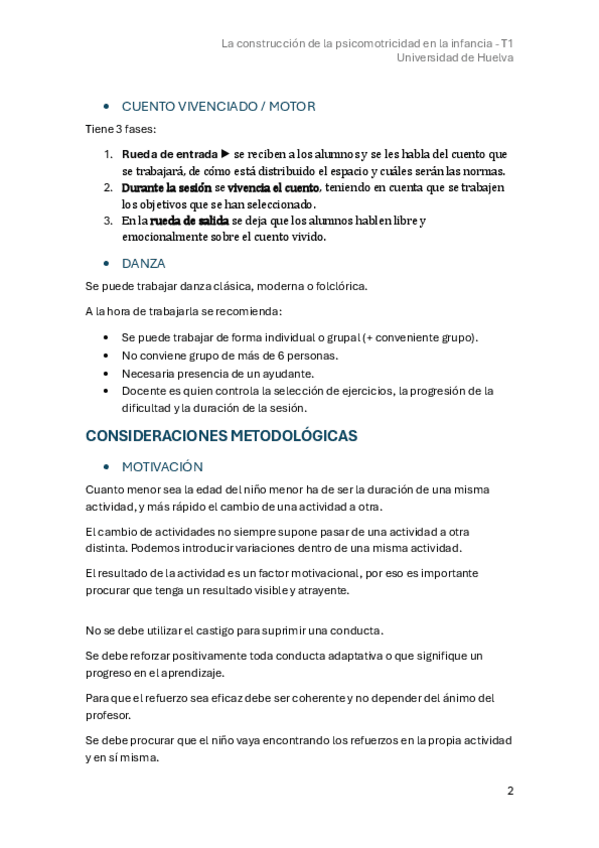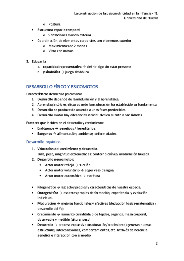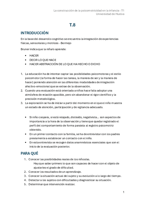 Universidad de Huelva. Asignatura: La construcción de la psicomotricidad en la infancia -T1