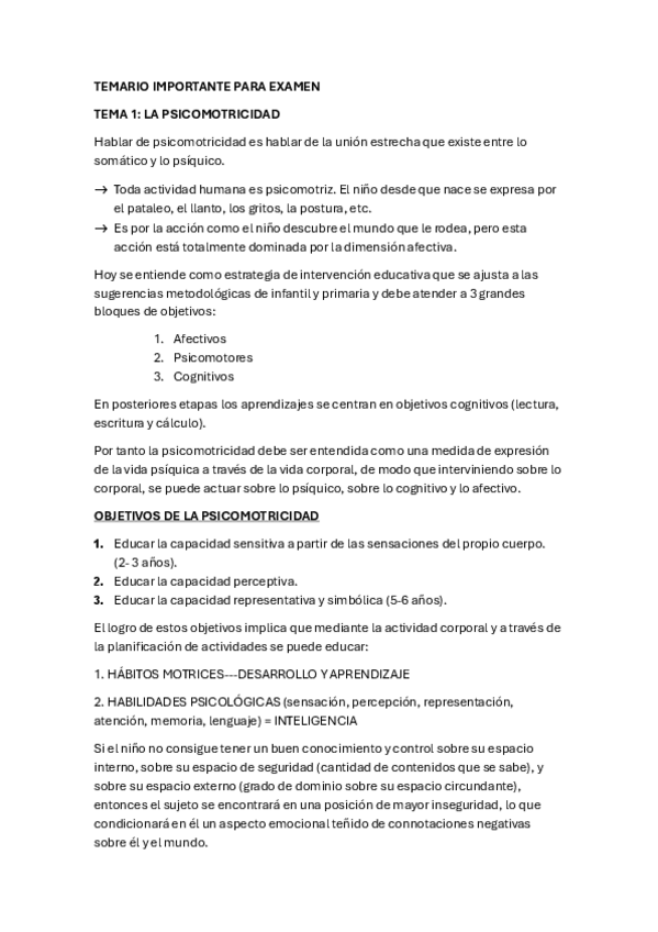 TEMARIO COMPLETO PSICOMOTRICIDAD