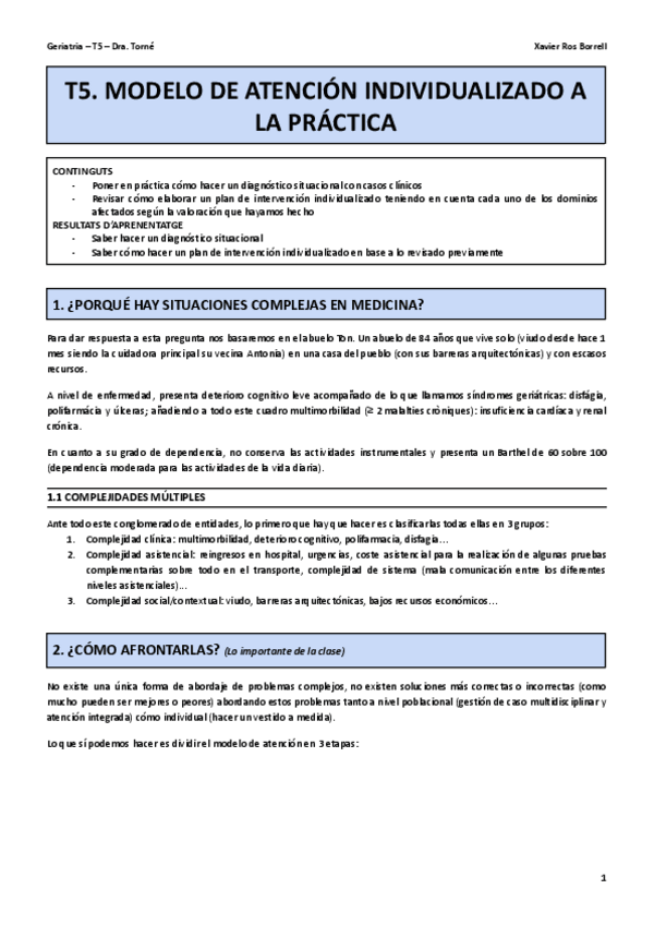 He publicado nuevos apuntes de 5º La Continuïtat Vital. Canvis en l'Organisme: Envelliment: Magis Geriatría