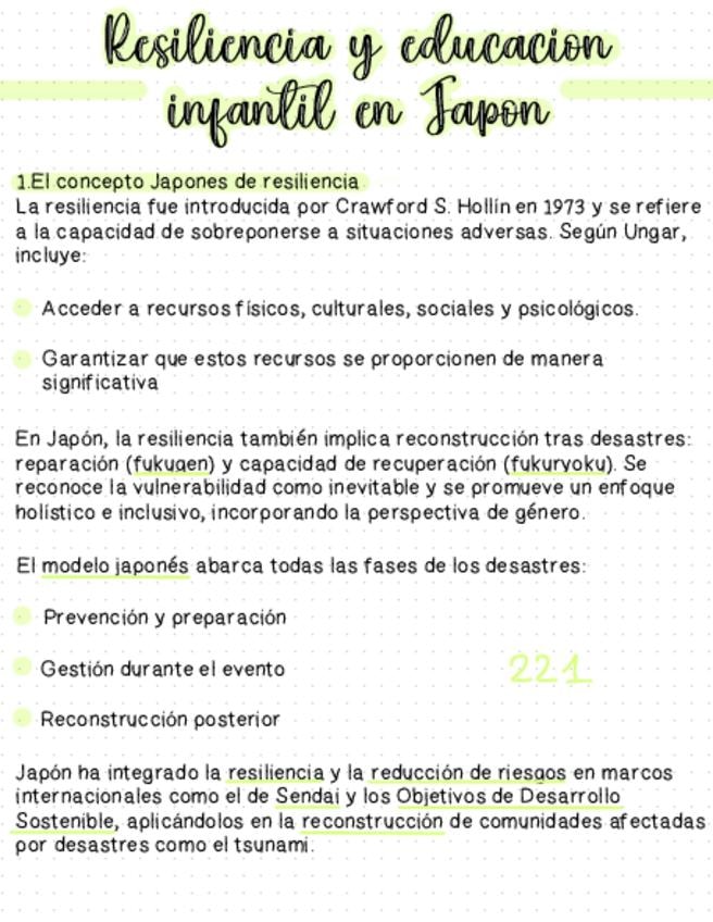 He publicado nuevos apuntes de 2º La Educación Infantil en Perspectiva Internacional: TEMA 8 RESILENCIA Y EDUCACIÓN INFANTIL EN JAPÓN ESQUEMA.pdf