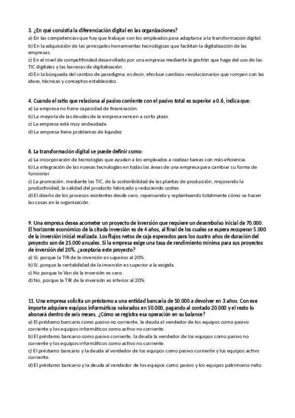 Algunas preguntas de examen de empresa tipo test