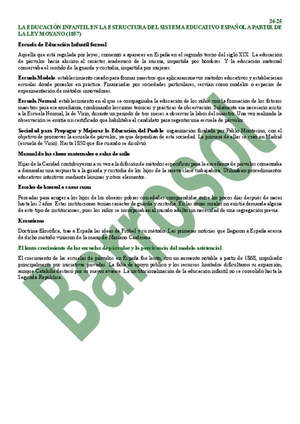 Resumen completo de la Escuela de Educación Infantil en España del Grado de Educación Infantil de la UNED. Año 2023-2024.