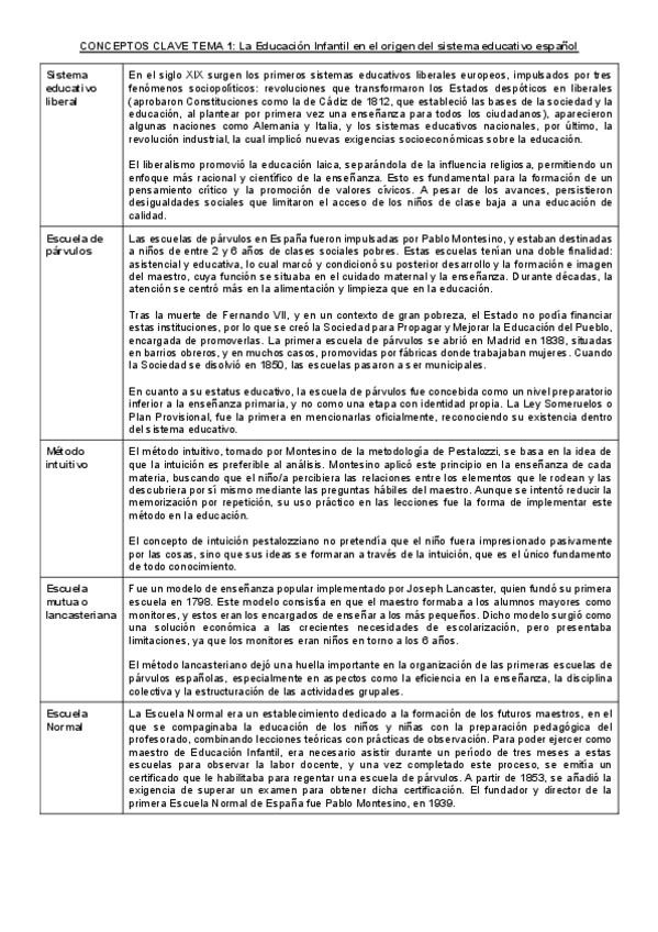 He publicado nuevos apuntes de 1º La Escuela de Educación Infantil en España: CONCEPTOS-CLAVE--RESUMEN-T.1-Y-T.2-ESCUELA.pdf