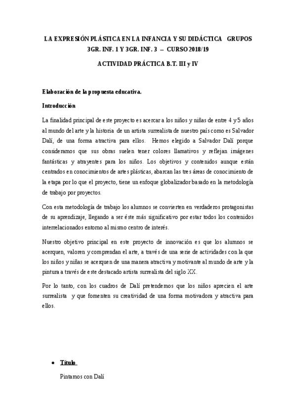 He publicado nuevos practicas de 3º La Expresión Plástica en la Infancia y Su Didáctica: Proyecto-Educativo.pdf