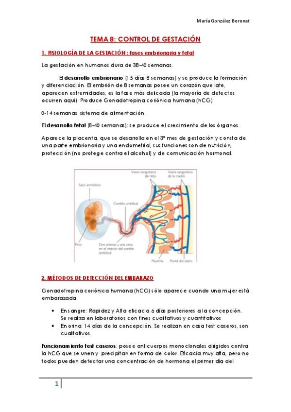 Apuntes redactados y resumidos del tema 5. Gestación: control de la gestación