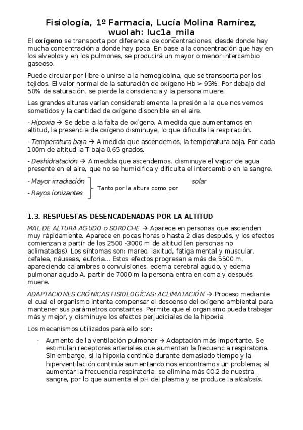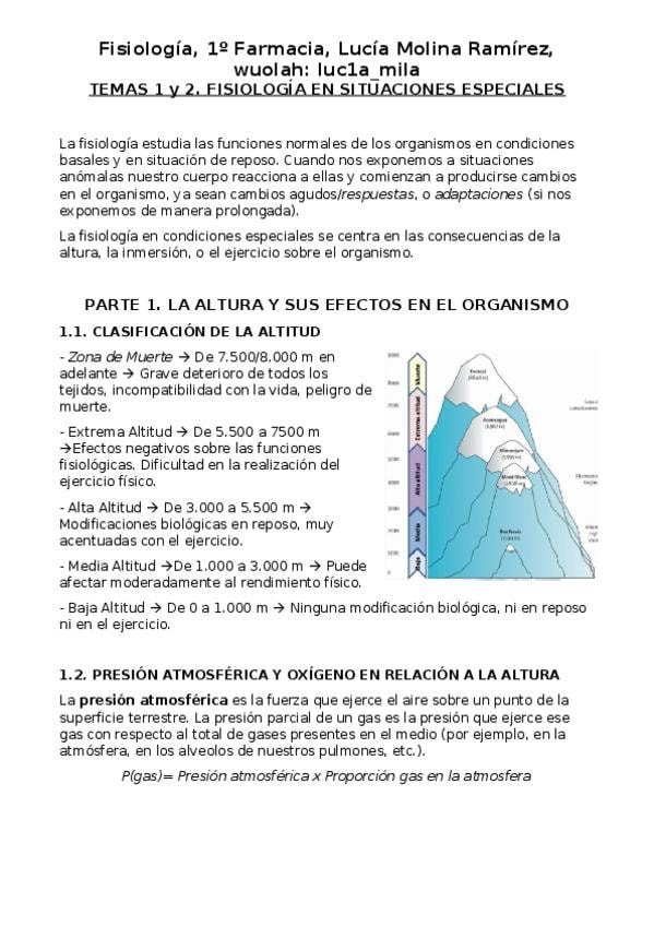 Apuntes redactados temas 1 y 2: Fisiologia en situaciones especiales (alturas, inmersión y ejercicio)