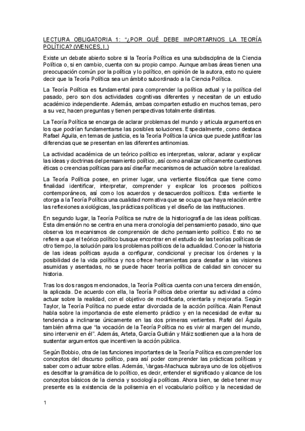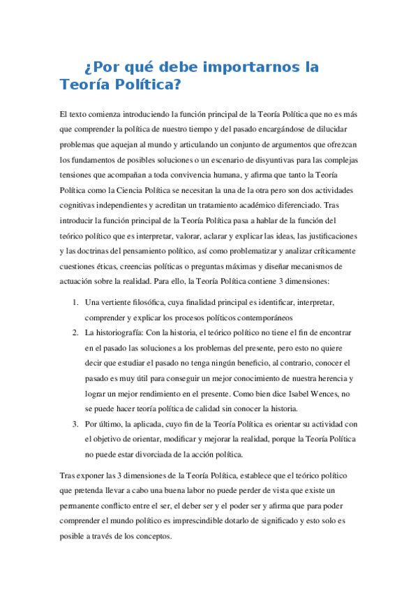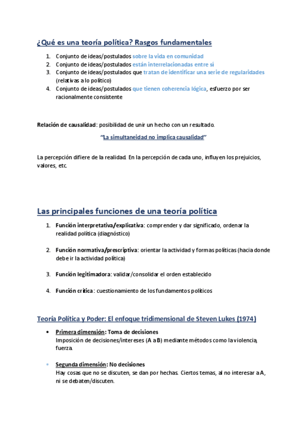 Cosas importantes para Teoría Política