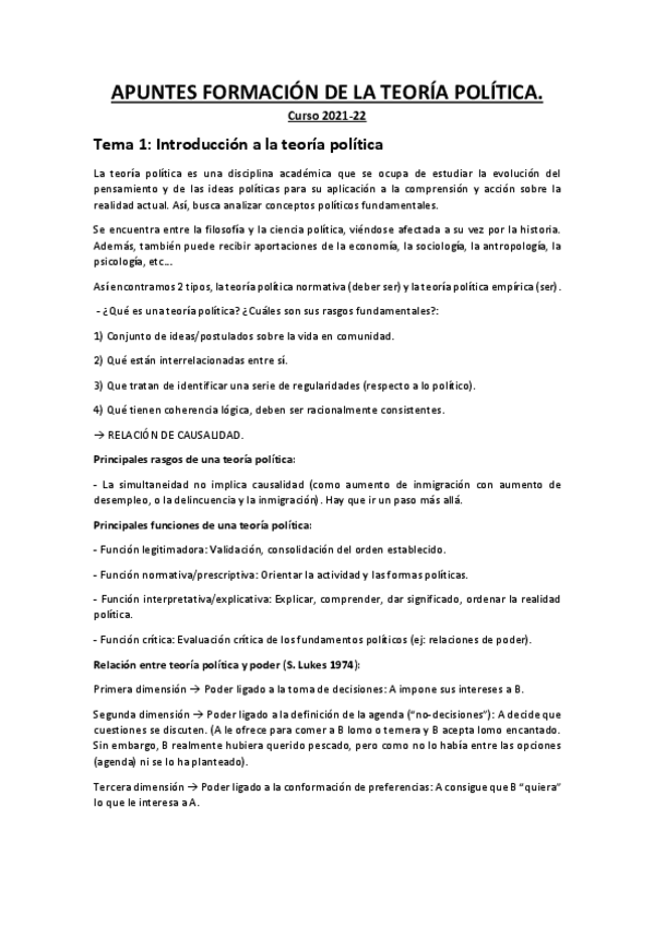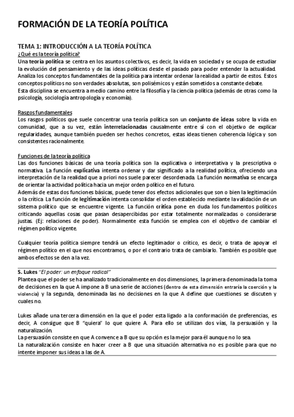He publicado nuevos apuntes de 1º La Formación de la Teoría Política: Temario Formacion de la teoria politica..docx