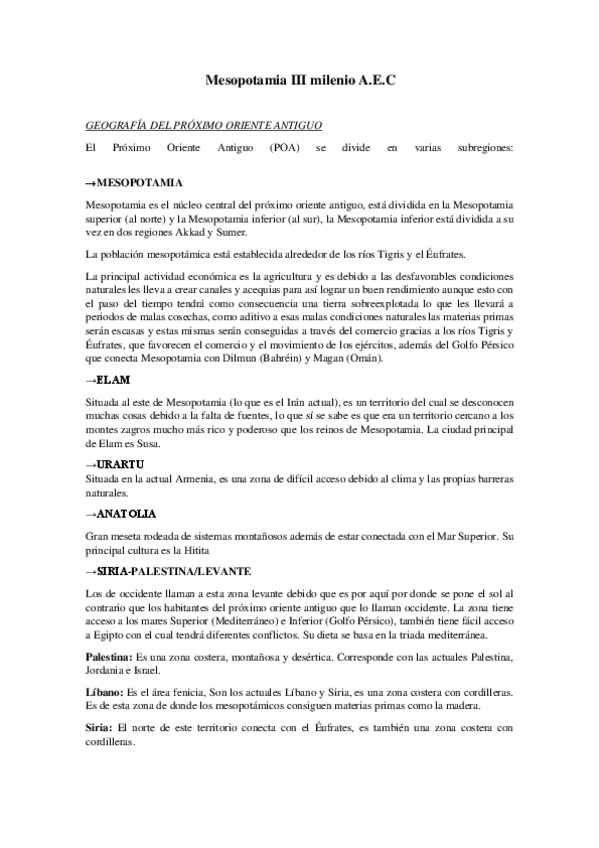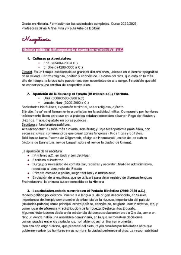 Apuntes completos del Mesopotamia con un Indice con las fechas de cada periodo