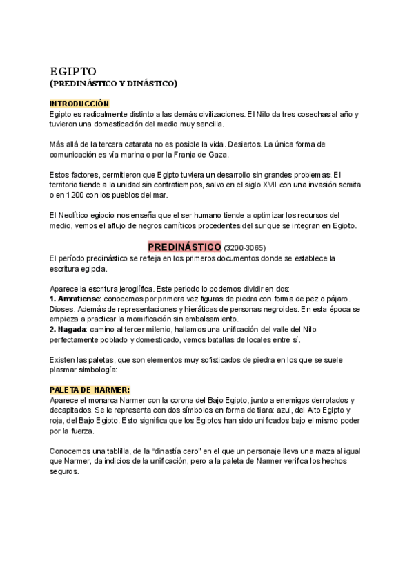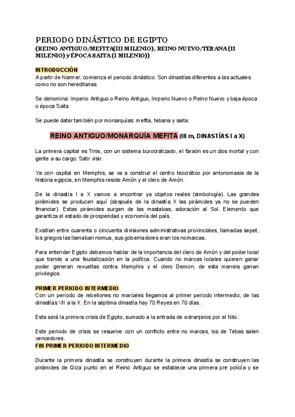 Apuntes completos del Antiguo Egipto con un Indice con las fechas de cada periodo