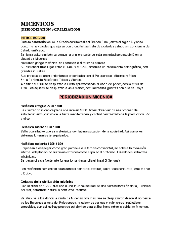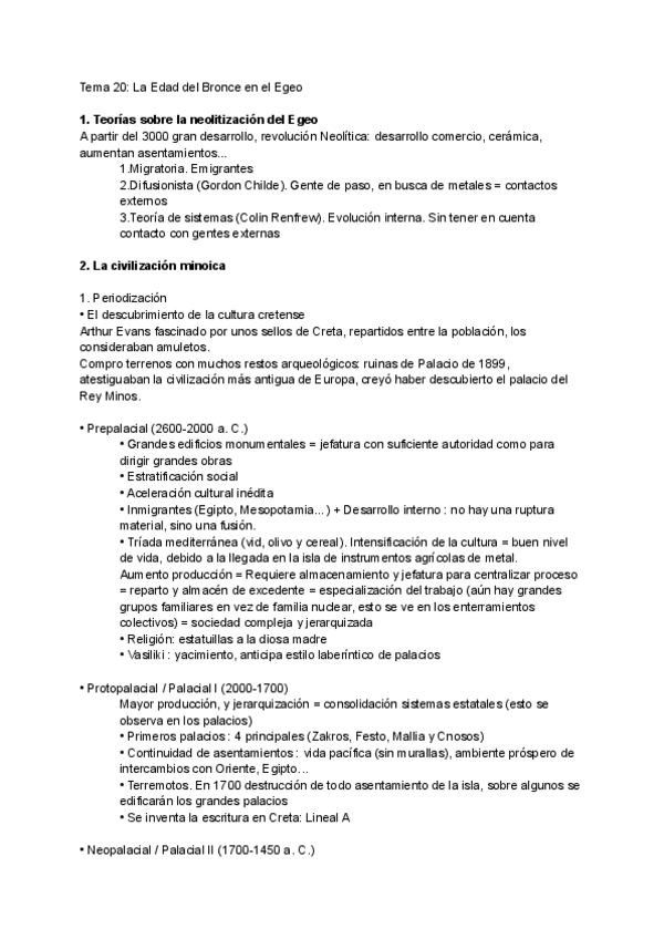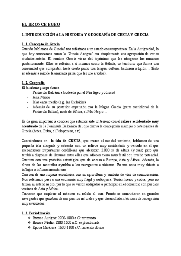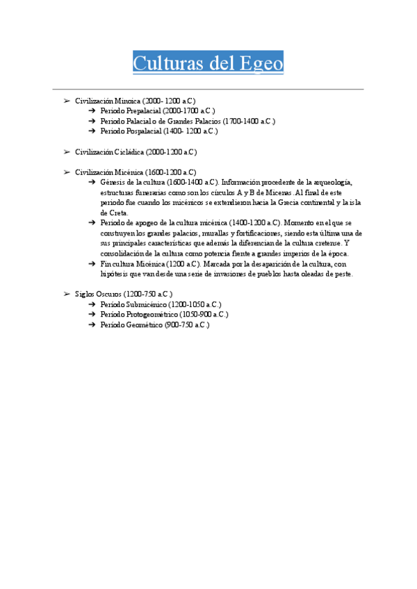 Apuntes completos del Culturas del Egeo con un Indice con las fechas de cada periodo