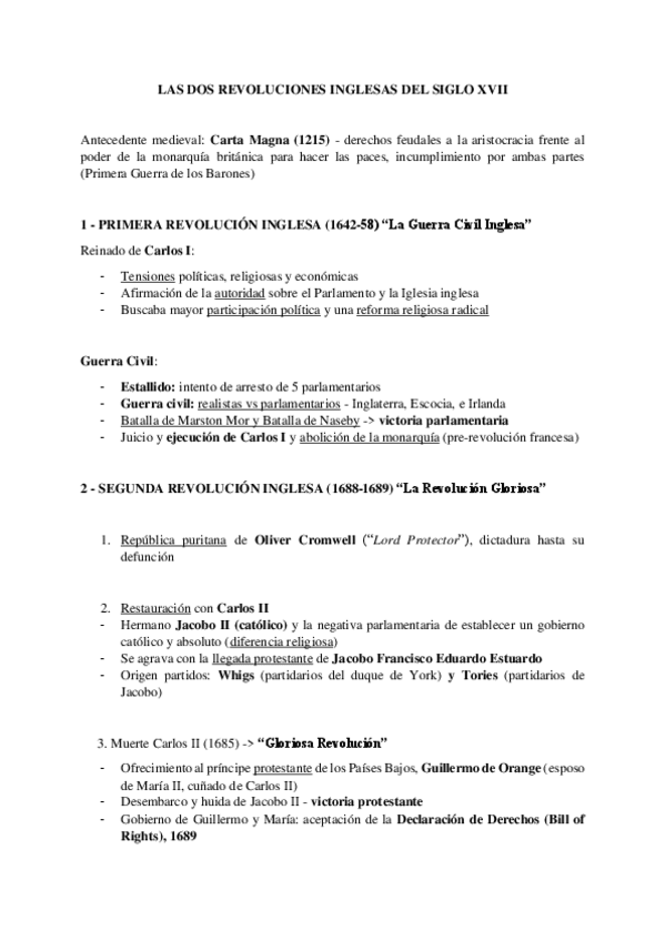 esquema del nuevo contenido de historia sobre las revoluciones inglesas