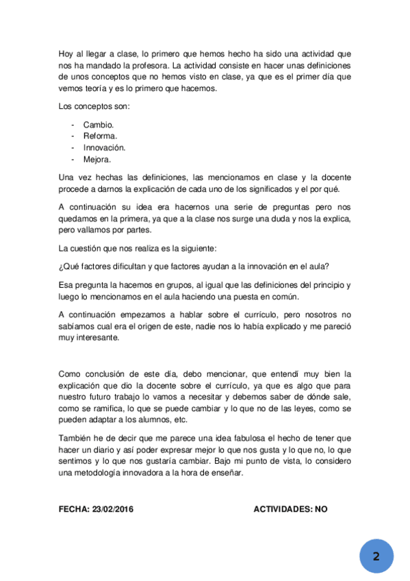 He publicado nuevos trabajos de 2º La Innovación Educativa en la Educación Infantil: diario...docx