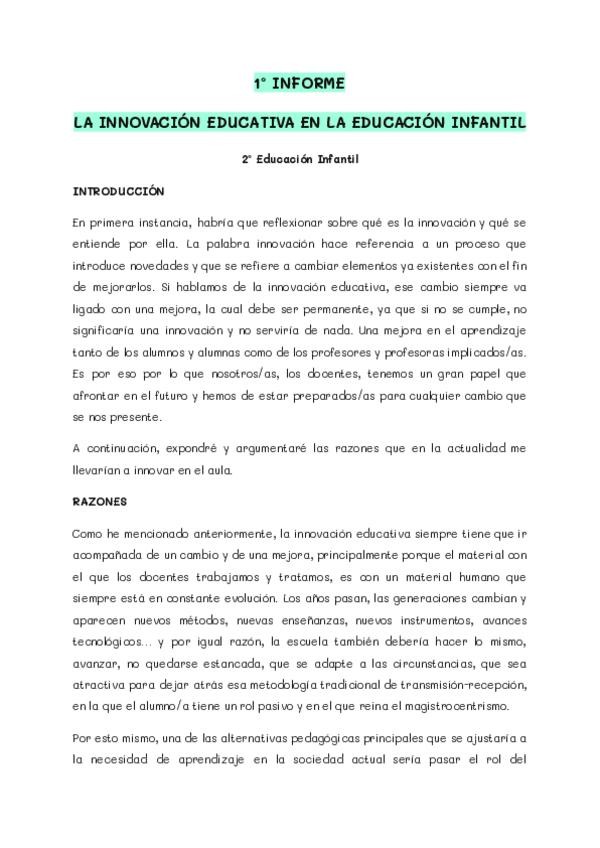 He publicado nuevos practicas de 2º La Innovación Educativa en la Educación Infantil: 1o-INFORME.pdf