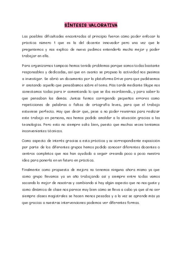 He publicado nuevos practicas de 2º La Innovación Educativa en la Educación Infantil: SINTESIS-VALORATIVA.pdf