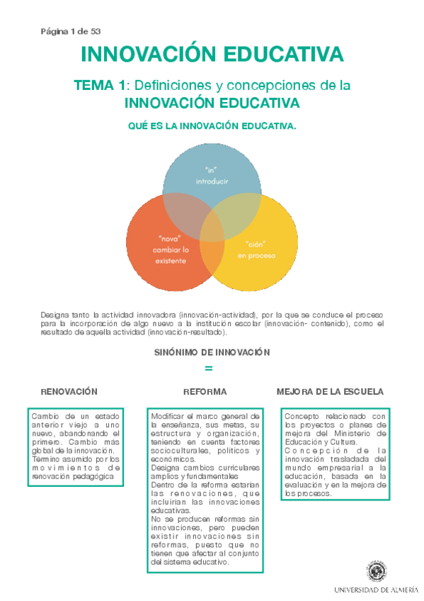 He publicado nuevos apuntes de 1º La Innovación Educativa en la Educación Primaria: Innovacion-tema-1.pdf
