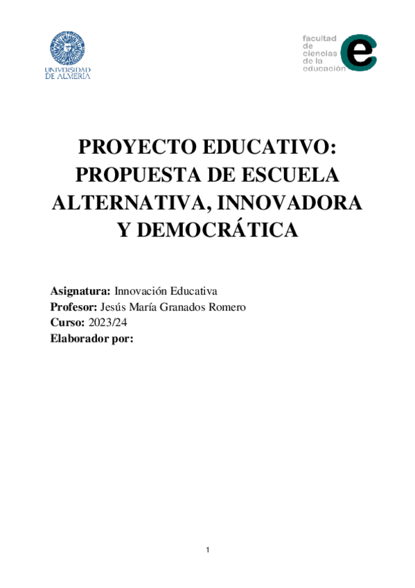 He publicado nuevos practicas de 1º La Innovación Educativa en la Educación Primaria: Proyecto-escuela.pdf