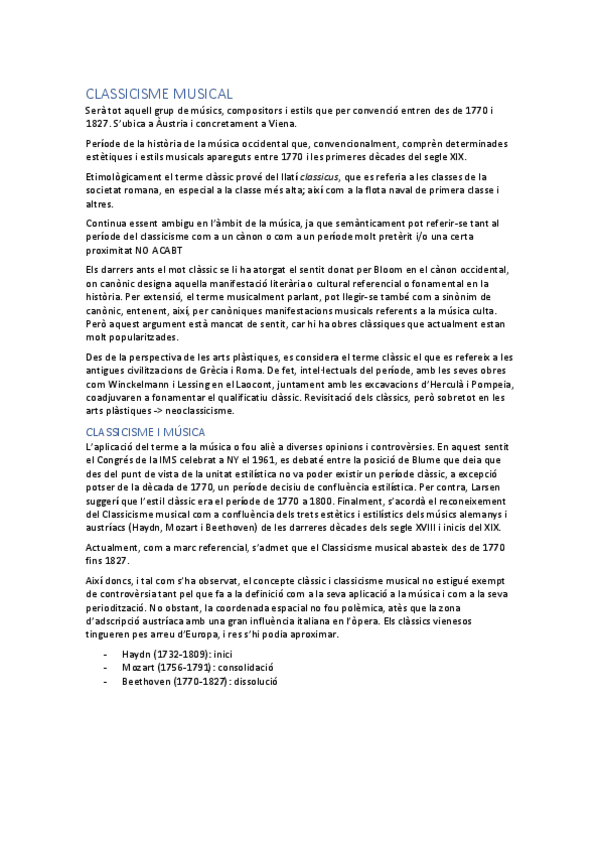 He publicado nuevos apuntes de 2º La Música del Classicisme: Apunts examen teòric