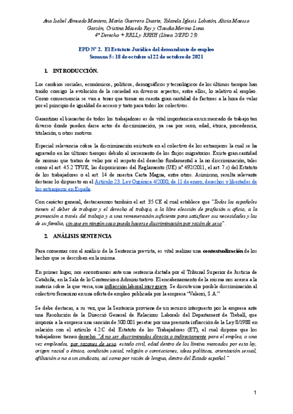 He publicado nuevos apuntes de 4º La Ordenación del Empleo y de la Igualdad en el Trabajo: Enunciado + EPDs resueltas.