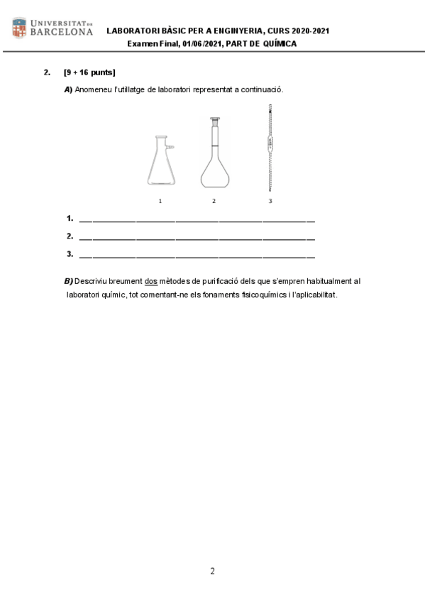 He publicado nuevos examenes de 1º Laboratori Bàsic per a Enginyeria: ExamenLBE2020-2021-Quimica.pdf