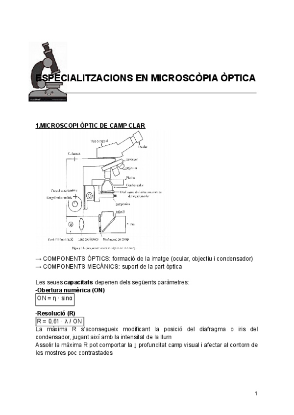 Especialitzacions en microscopia òptica