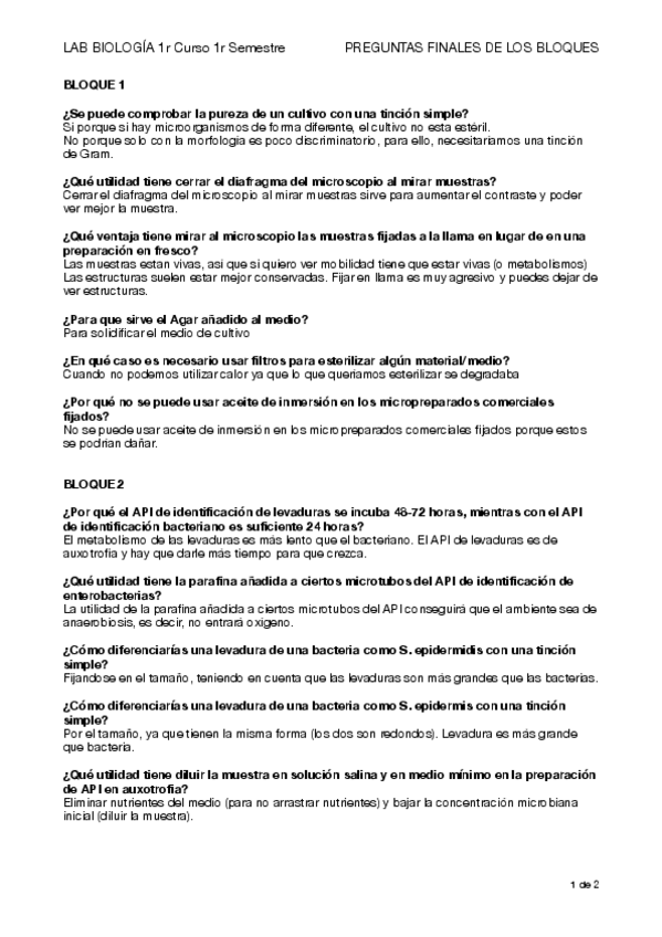 preguntes finals dels blocs de les practiques del lab de biologia