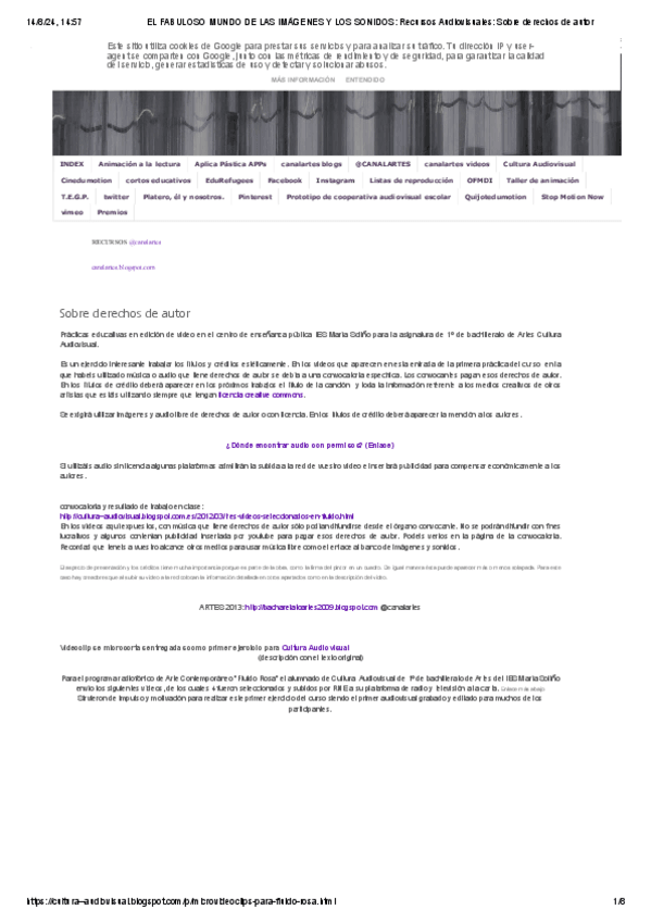 He publicado nuevos apuntes de 1º Laboratorio de Creación Audiovisual: EL-FABULOSO-MUNDO-DE-LAS-IMAGENES-Y-LOS-SONIDOS-Recursos-Audiovisuales-Sobre-derechos-de-autor.pdf