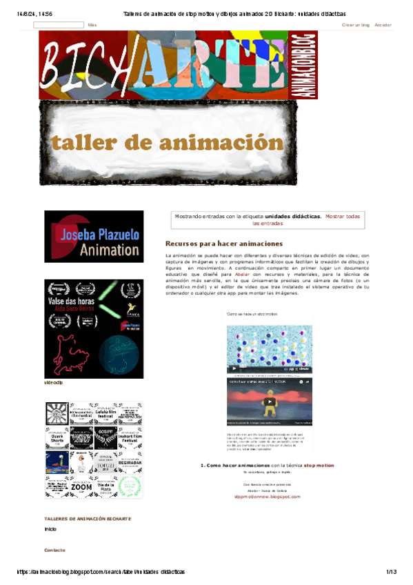 He publicado nuevos apuntes de 1º Laboratorio de Creación Audiovisual: Talleres-de-animacion-de-stop-motion-y-dibujos-animados-2D-Bicharte-unidades-didacticas.pdf