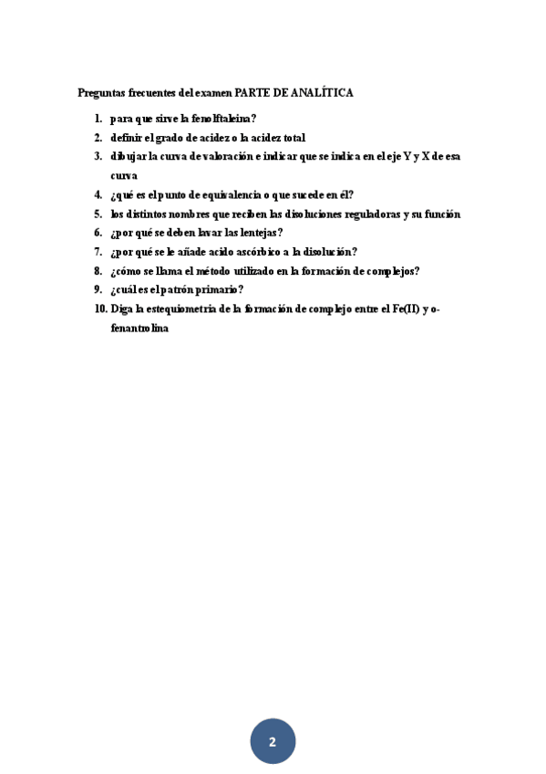 PERGUNTAS RESUELTAS frecuentes del examen PARTE DE ANALÍTICA