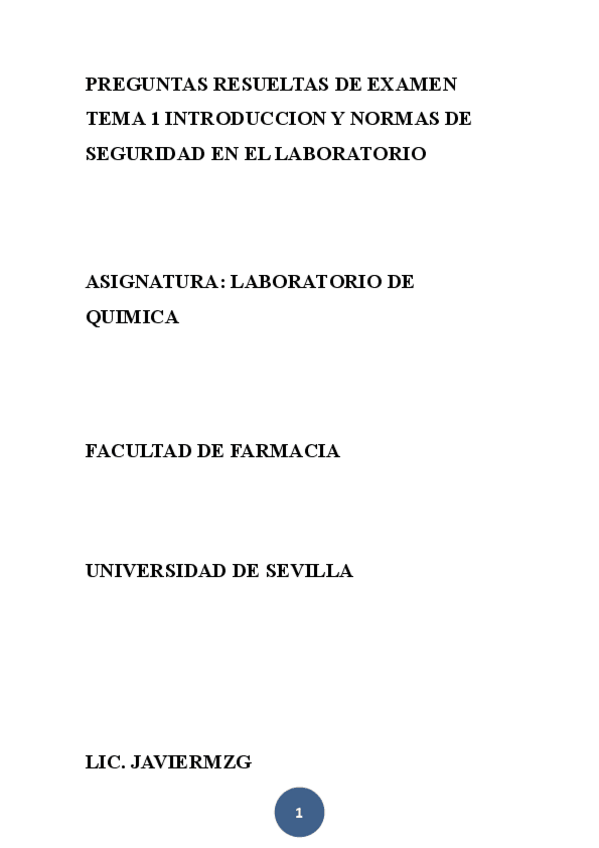 COLECCION DE PREGUNTAS RESUELTAS DE EXAMEN TEMA 1 INTRODUCCION Y NORMAS DE SEGURIDAD EN EL LABORATORIO