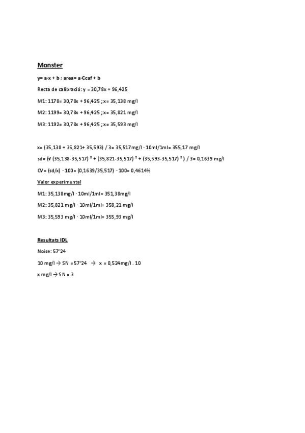 Recull de pràctiques i estudi de casos realitzats en el laboratori. Inclou rectes de calibratge i arbres de dilucions dels patrons.