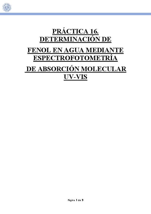 He publicado la práctica 16 del Laboratorio de Química Analítica I del 3ºcurso de Química: Práctica 16: Determinación de fenol en agua mediante espectrofotometría de absorción molecular UV-Vis.