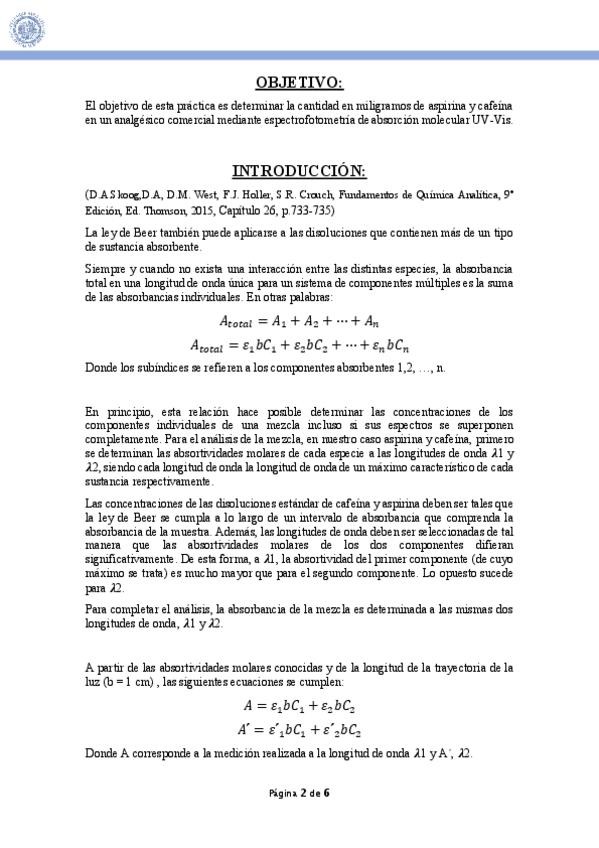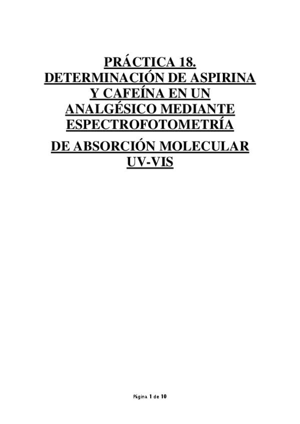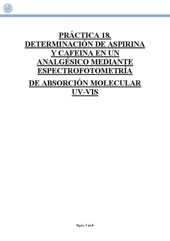 He publicado el informe de la práctica 18 del Laboratorio de Química Analítica I del 3ºcurso de Química: Práctica 18: Determinación de aspirina y cafeína en un analgésico mediante espectrofotometría de absorción molecular UV-Vis.
