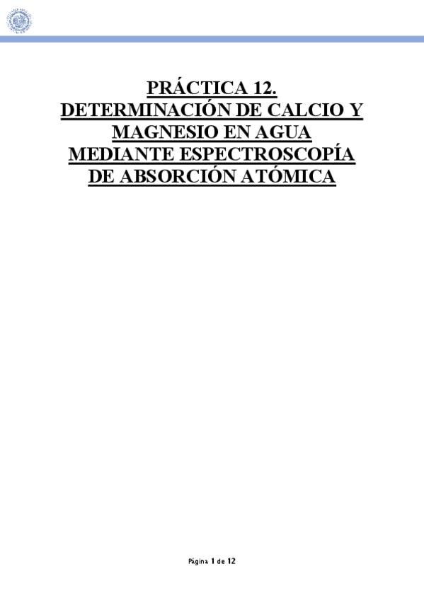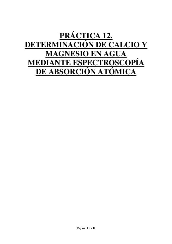 He publicado el informe de la práctica 12 del Laboratorio de Química Analítica I del 3ºcurso de Química: Práctica 12: Determinación de calcio y magnesio en agua mediante espectroscopía de absorción atómica.
