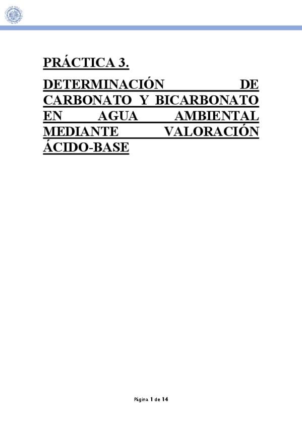 He publicado el informe de la práctica 3 del Laboratorio de Química Analítica I del 3ºcurso de Química: Práctica 3: Determinación de carbonato y bicarbonato en agua ambiental mediante valoración ácido-base.