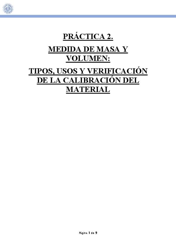 He publicado el informe de la práctica 2 del Laboratorio de Química Analítica I del 3ºcurso de Química: Práctica 2: Medida de masa y volumen: tipos, usos y verificación de la calibración del material.