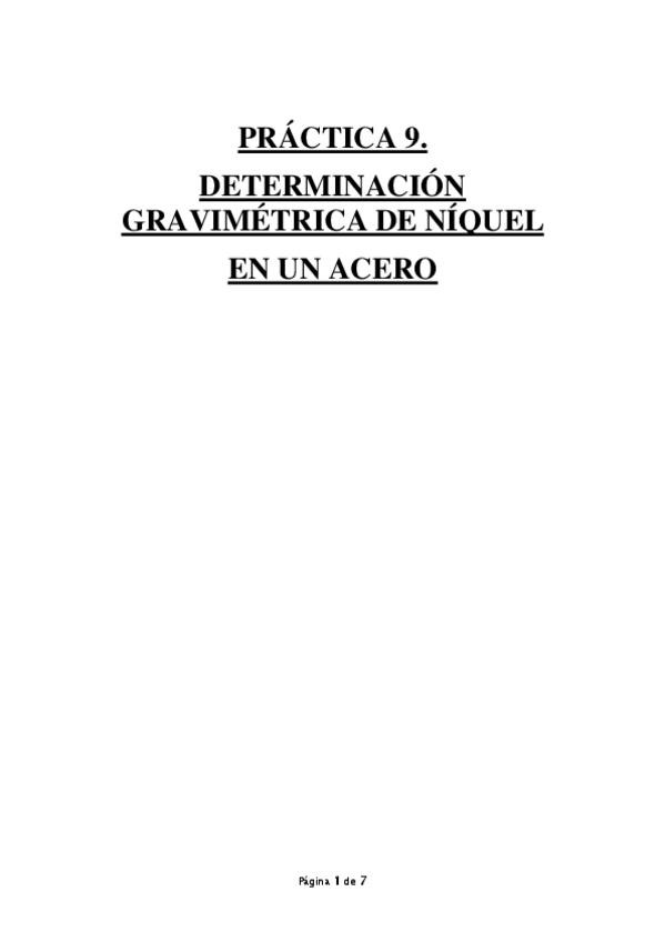 He publicado el informe de la práctica 9 del Laboratorio de Química Analítica I del 3ºcurso de Química: Práctica 9: Determinación gravimétrica de níquel en un acero.