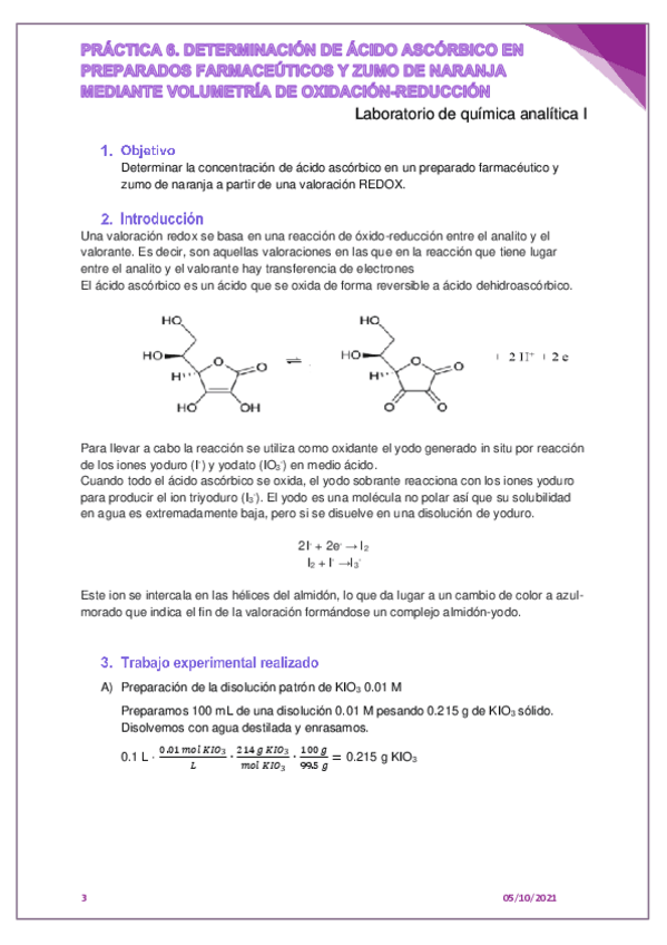 He publicado nuevos practicas de 3º Laboratorio de Química Analítica I: Practica-6.-Determinacion-de-acido-ascorbico-en-preparados-farmaceuticos-y-zumo-de-naranja-por-volumetria-REDOX.pdf