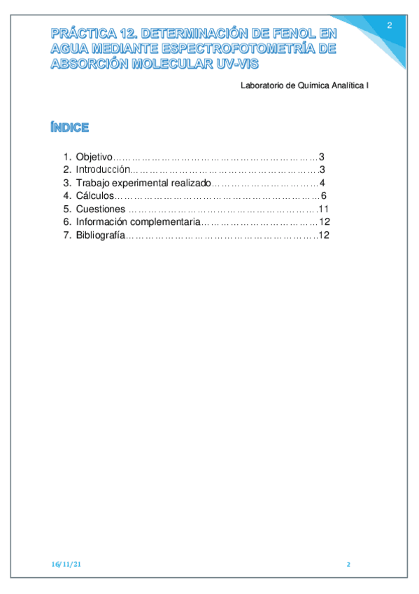 He publicado nuevos practicas de 3º Laboratorio de Química Analítica I: Practica-12.-Determinacion-de-fenol-en-agua-mediante-espectrofotometria-de-absorcion-molecular-UV-VIS.pdf