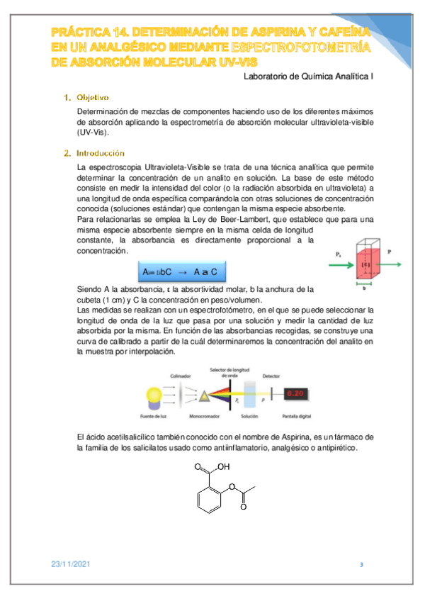 He publicado nuevos practicas de 3º Laboratorio de Química Analítica I: Practica-14.-Determinacion-de-aspirina-y-cafeina-en-un-analgesico-mediante-espectrofotometria-de-absorcion-molecular-UV-VIS.pdf